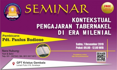Awal Desember tepatnya pada tanggal 7 Desember 2019 STT Tabernakel Indonesia menyelenggarakan acara seminar bertemakan "Kontekstual Pengajaran Tabernakel Di Era Milenial" dengan pembicara Pdt. Paulus Budiono. Kegiatan tersebut diselenggarakan di Gereja Pantekosta Tabernakel Kristus Gembala yang beralamat di Jl. Lemah Putro I / 18 Surabaya. Peserta yang hadir mengikuti seminar adalah Dosen, Staf, Mahasiswa, Hamba Tuhan dan Jemaat.